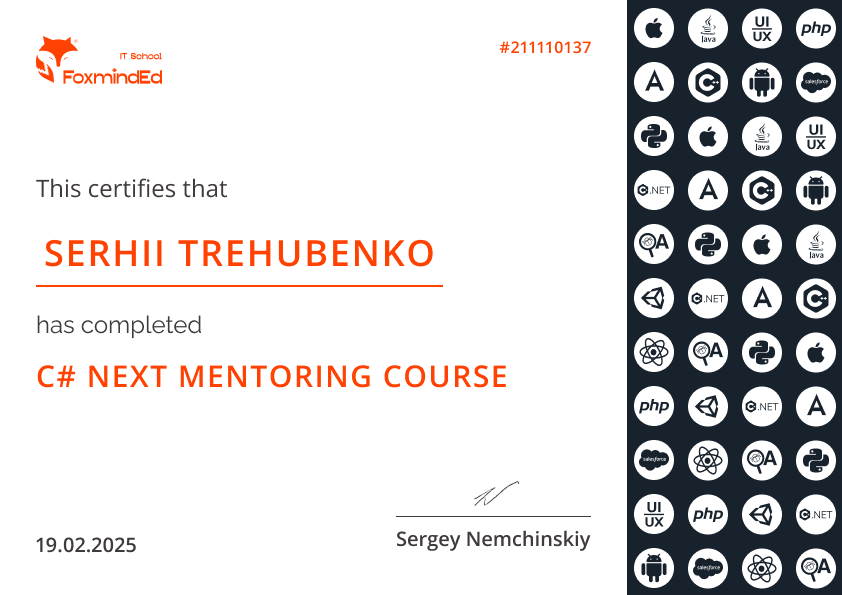 Ментор курса C# Next Андрей Винничук сейчас работает на позиции Tech Lead, а его общий опыт в IT уже более 10 лет. Он готов делиться знаниями и идти к новым вершинам вместе со студентами.