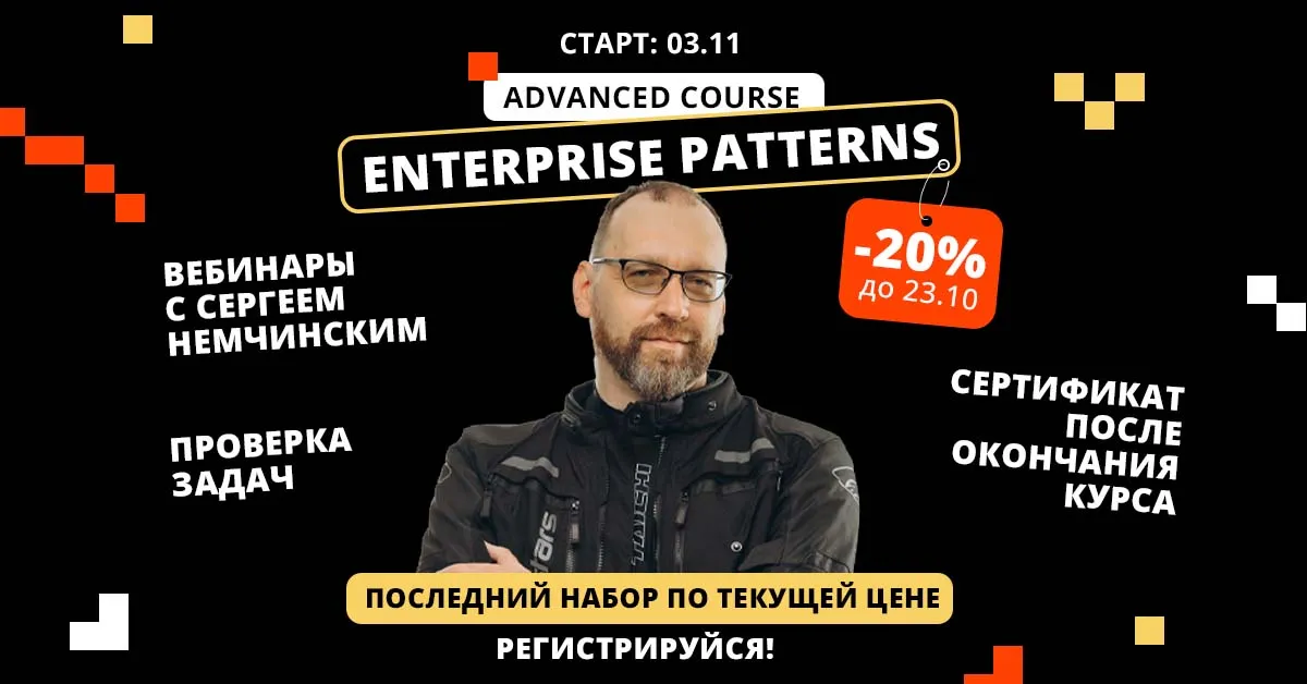 Курс «Enterprise Patterns». Последний набор по текущей цене! Скидка 20% до 23.10